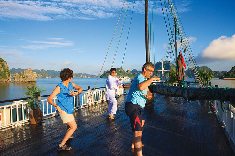 - 06.00: Start your day with a Tai Chi routine on sundeck or catch a morning view of the stunning bay’s landscape with a cup of tea or coffee.