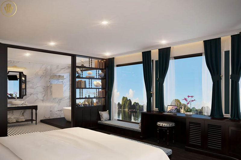 - Return to Regal Cruise, visitors continue the journey to explore the other hidden beauty of Halong Bay – Lan Ha Bay. You can choose to sip coctails on the sundeck or relaxing in the cabin with an extra-large view to the small green islets.