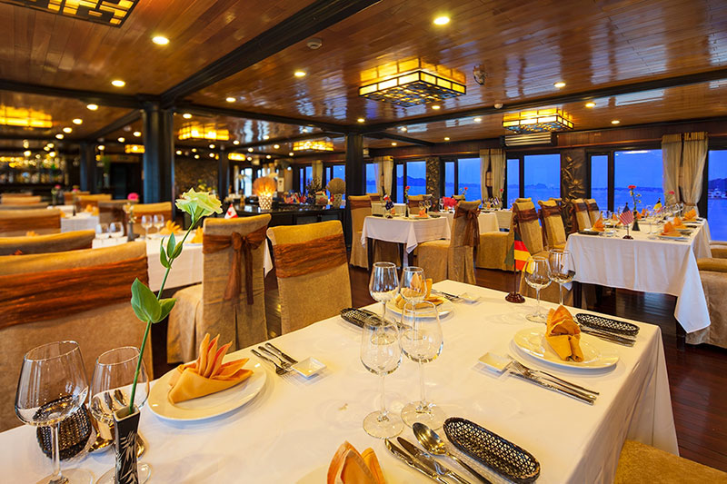 - Meals on board are fusion. Vietnamese, seafood and international. Guest should advise of any special food reference, allergies or dietary repuirement at least 1 week prior to the cruise date.