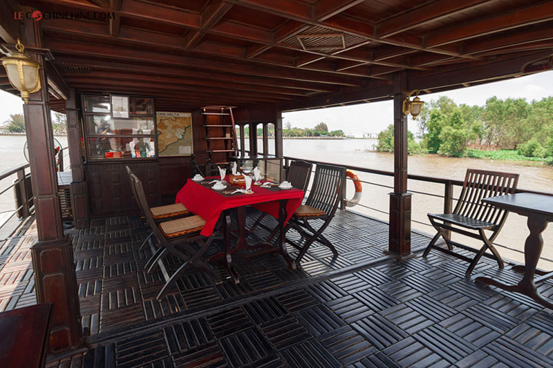- Designed as a traditional rice barge, Douce Mekong is a modern river boat entirely made of wood that sets the exploration of the Mekong Delta in an authentic and elegant setting which perfectly fits in with the natural surroundings. It combines charm and comfort for a truly quiet cruise on the winding canals of the Delta. Travelers will be greeted by a caring crew both discreet and friendly who aims at maintaining a high-quality personalised service. On board Douce Mekong there is a quiet atmosphere in which one cannot help but relax and enjoy the never-ending exquisite landscapes that unfold along the river.