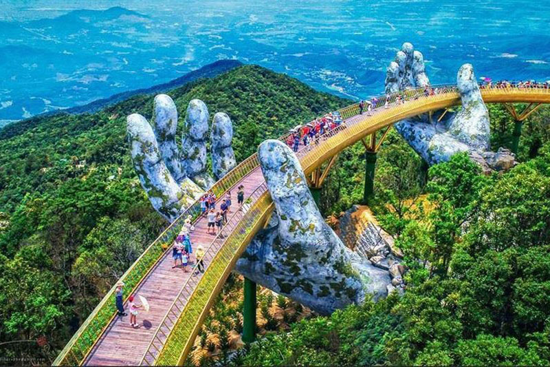 - Stop at first station to visit Vong Nguyet hills, Linh Ung - Bana Hills- pagoda, The Old Villas of French, Flower Garden, Wine stores & Specially Famous Golden Bridge